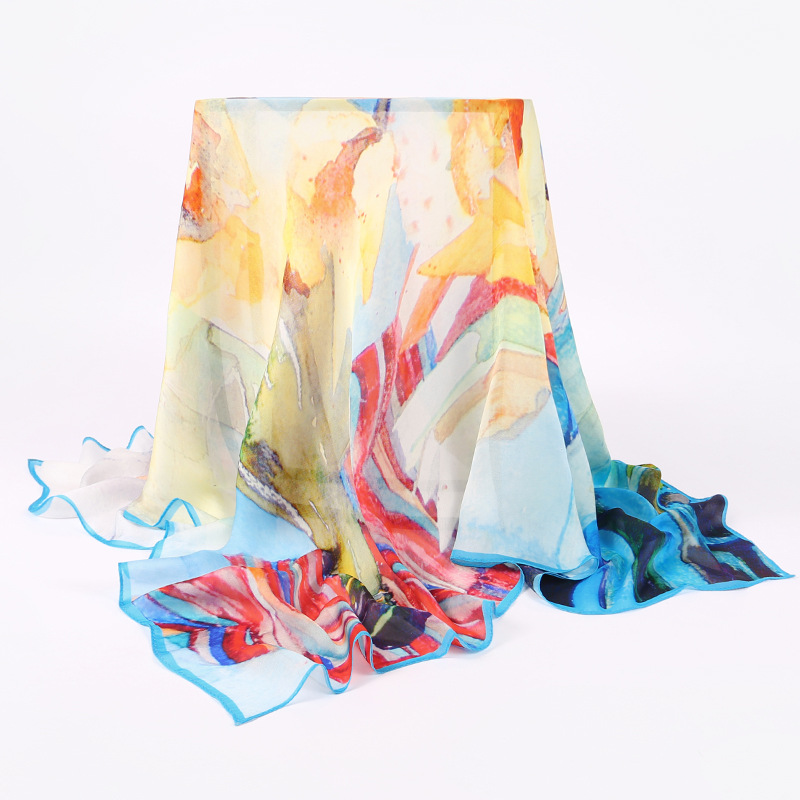 Decorative oil painting inkjet georgette silk square scarf for ladies S56